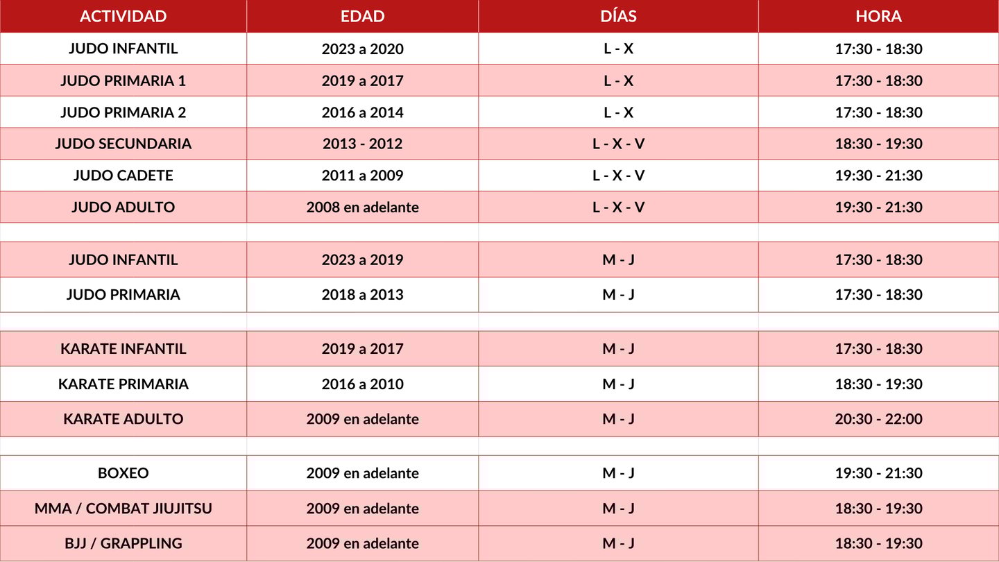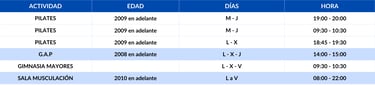 Las actividades del horario no corresponden a una sola edad. Cada franja está pensada para diferentes rangos.